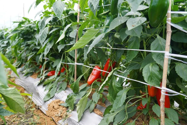 据了解,该基地通过土地流转种植甜椒50余亩,共有90个大棚,主要种植品种为甜杂824,采收期将持续到明年4、5月份。甜椒采收完后,将会种上玉米、甜瓜等其他农作物,实现一年四季棚内“常青”。