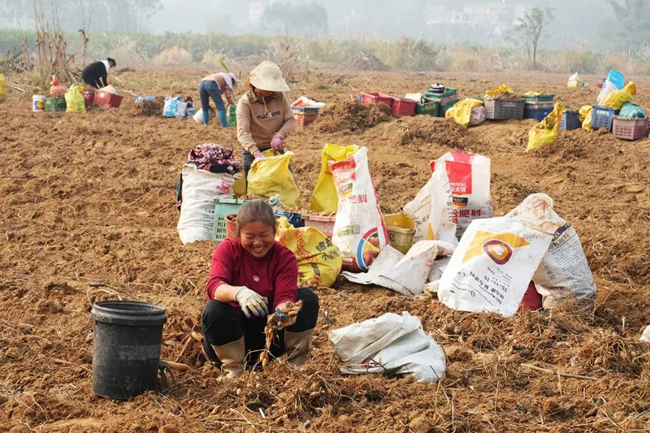 村民们正在忙着采收桂郁金。蒋易珊 摄