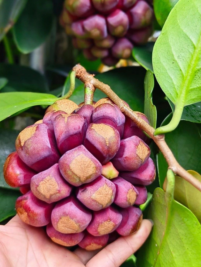 “布福娜”又名黑老虎,是集食用、药用、绿化、观赏于一体的珍稀植物,也被人们称为美容长寿之果。在庄埠村“布福娜”种植基地,负责人拿着果子高兴地说:“‘布福娜’果实越大,卖相越好,价格也更高。像这种一斤多的果王,我们去年卖差不多100块一个”。据了解,“布福娜”亩产1000—2000斤,一亩产值约三万元左右,目前庄埠村种植的“布福娜”销售主要以电商为主,销往浙江等地。