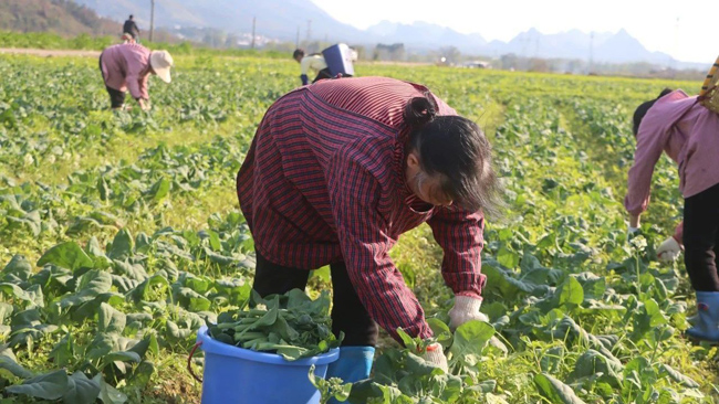 正值丰收旺季,在恭城瑶族自治县龙虎乡龙岭村实乐屯蔬菜种植基地,百亩芥兰长势喜人,村民们以饱满热情和坚定信念,积极投身到新一年的农业生产中,田间地头洋溢着丰收的喜悦。