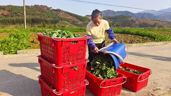 据悉,该芥兰种植基地由外地客商承包经营,种植面积100余亩,产量超15万斤,通过流转当地土地发展规模化蔬菜种植。基地采用“企业+农户”模式,优先聘用本地村民参与田间管理、采收等工作,采收高峰期,基地日均用工量超20人,村民通过土地流转租金和务工薪金实现“双份收入”。“从播种到采收,我一直在基地干活,每天能挣100元,还不耽误照顾家里!”村民李大姐一边麻利地收割芥兰一边笑着说道。