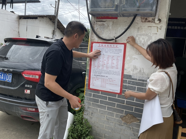 技术人员张贴宣传资料