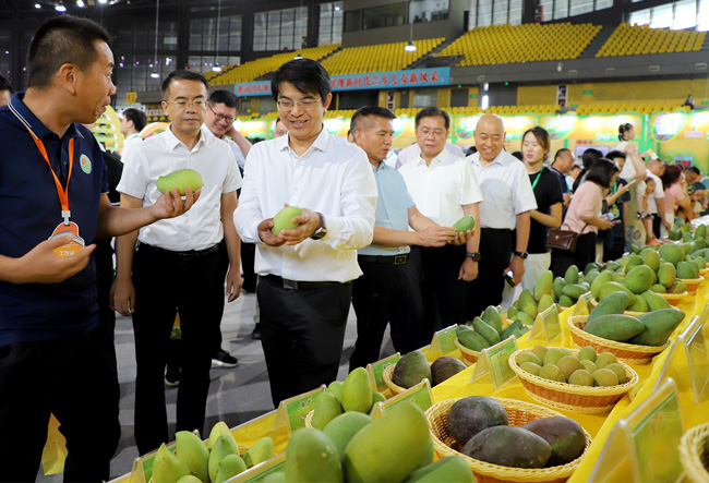 7月11日,2025年中国农民丰收节芒果丰收季促消费活动·百色芒果营销季在广西百色市田东县举行。启动仪式上,农业农村部南亚热带作物中心主任陈忠毅发布全国芒果产业信息,广西壮族自治区农业农村厅副厅长刘康推介广西热带作物产业发展情况。