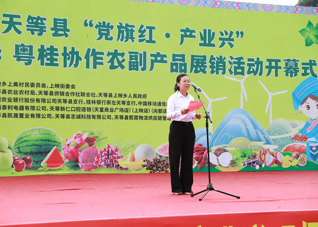 在活动现场,各特色农产品直播间还借助粤桂协作助力搭建的直播展销矩阵,通过“直播+展销”的方式大力推介天等县13个乡镇农特产品,进一步拓宽销售渠道,推动农产品销往全国各地。