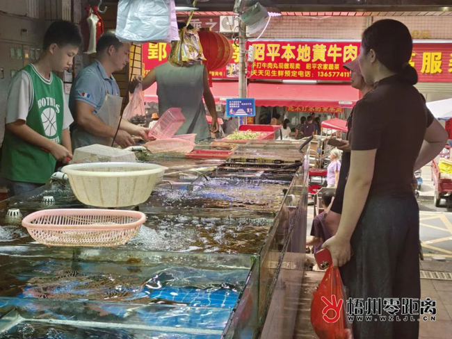 在怡景市场的水产摊档,鱼虾跳跃,产品琳琅满目,新鲜的大明虾、生蚝、带子、花蛤等海鲜让人购买欲强烈。几名水产档经营者表示,摊档的海鲜主要从广东和北海进货,既有人工养殖的,也有海捕的。虽然近日开海了,但他们了解到这两天海边有台风,渔获不是很多。目前梧州市面上的海鲜种类和价格暂时没有太大变化,过段时间海鲜品类应该会更加丰富。“海鲜每天价格都不同,开海后虽然价格可能会有所下降,但降幅不会太大,每年的情况基本差不多。”一名水产档经营者说道。
