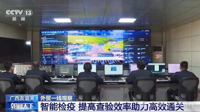 在海关查验平台,海关关员核对车辆信息,检查货物;智能检疫处理系统在保证查验准确率的同时提高查验效率。据海关统计,今年前8个月,友谊关口岸监管的进出境车辆达到63.72万辆,同比增加了38%。
