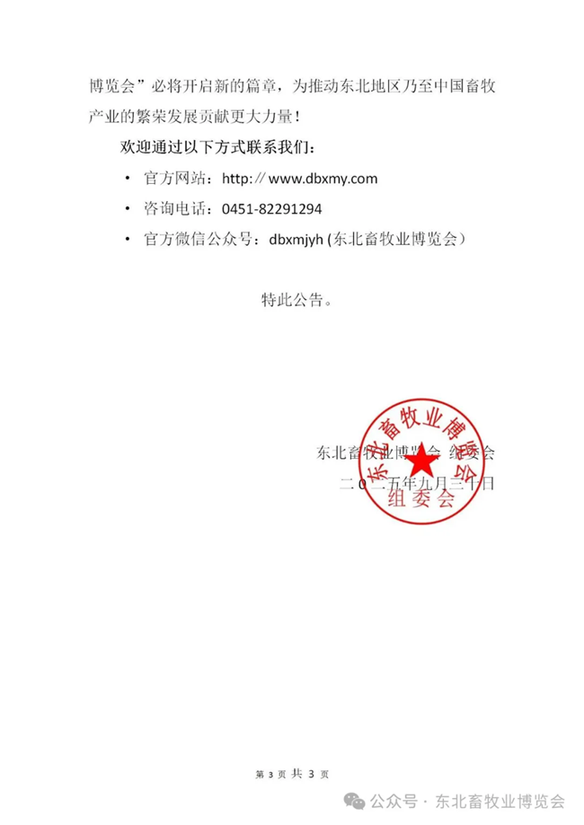 ·官方微信公众号:dbxmjyh (搜索名称“东北畜牧业博览会”)