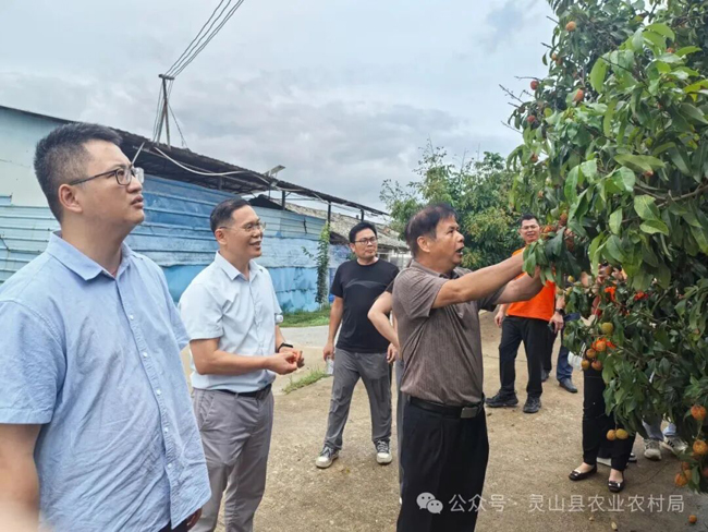 灵山县财政局、县水果生产技术服务中心、保险监管支局联合深入受灾果园进行调研