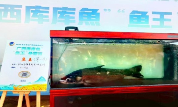 在广西“鱼王”争霸赛现场,吸引了全区众多水产养殖企业踊跃参与。广西江河密布、水库众多,淡水资源丰富,水质优良,特别是柳州连续5年获得全国“水质冠军”,具有“好水养好鱼”的独特优势。来自全区多家水产养殖企业送来的“广西库库鱼”参加“鱼王”竞选,它们体硕形美、鳞光闪闪。经过激烈的角逐,柳州市蔬菜副食品有限公司选送的一尾重达32.5公斤的水库鱼获本届“鱼王”桂冠。