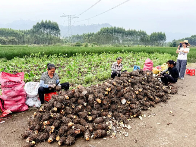 当前,基地种植的荔浦芋收购价在每斤3元左右,亩产超4000斤。这份丰收,离不开修仁镇党委“动车党建”品牌下“产业振兴专列”的精准赋能。近年来,修仁镇党委政府充分发挥党建引领作用,将“动车党建”品牌优势深度融入特色农业发展全过程,通过组织农技专家下沉指导、统一标准化种植、对接大型购销商保障销路等一系列举措,为芋农提供了从产到销的全链条服务,极大激发了农户的种植热情,提升了荔浦芋的产业效益。据统计,今年修仁镇荔浦芋种植面积约4000亩,年产量近1万吨。