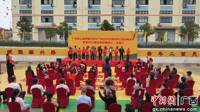 10月31日,广西艮山谦传媒公司与广西1828生物科技公司战略合作销售NFC唯叻哆砂糖橘汁、沃柑汁产品发车仪式,在广西1828大健康产业园内举行。