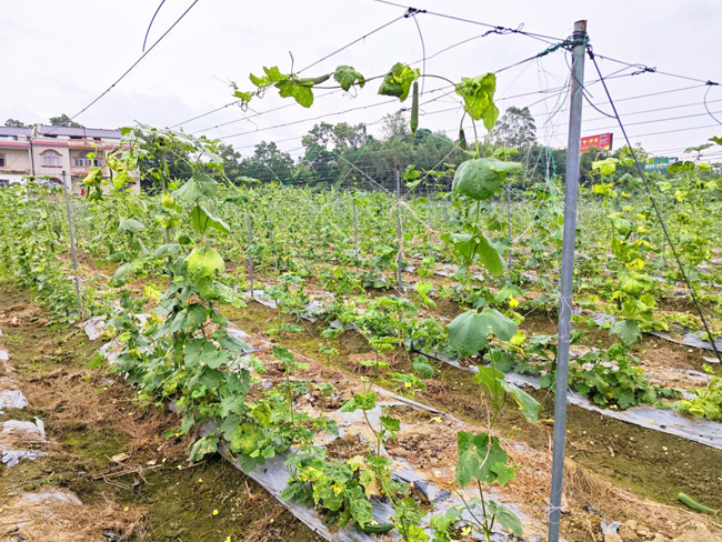 在玉州区大塘镇苏烟村村民胡进和妻子共同打理的丝瓜基地里,9月中旬种植的丝瓜郁郁葱葱,一根根翠绿饱满的丝瓜垂挂在棚架下。“我们种了30亩丝瓜,10月下旬开始采摘,采收期将持续到12月,平均亩产约1500斤,现市场价稳定在每斤3元左右。”胡进算了一笔账,仅丝瓜一项,就能带来可观的收入。
