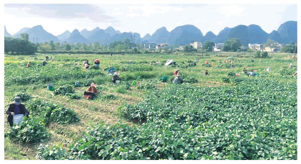 近日,雁山区柘木镇禄坊村205亩大豆种植基地迎来丰收季,田间地头一派繁忙景象。通过土地流转实现规模化种植的大豆长势喜人,农户抓紧晴好天气进行采收。饱满的豆荚映着村民喜悦的笑容,呈现出一幅产业兴旺、乡村振兴的生动画卷。