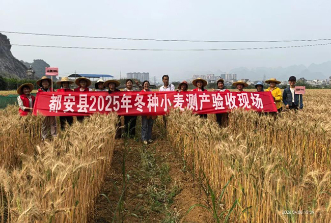 冬小麦原产北方,要在喀斯特地貌的都安落地生根、实现丰产,技术保障是关键。针对我县气候与土壤特点,自治县农技部门全程提供跟踪指导服务,量身定制适配本地的冬小麦种植技术方案,让北方小麦顺利适应瑶乡气候环境。