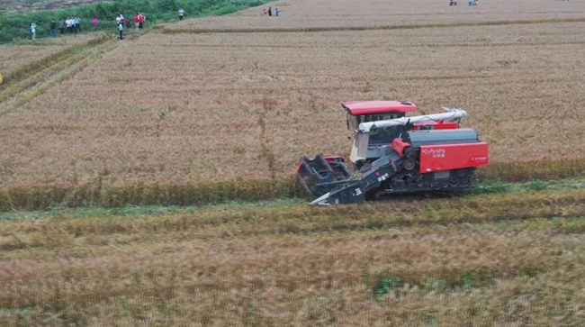 在地苏镇拉棠村吞晚屯、安阳镇苏利社区三刁屯,连片的冬小麦进入成熟期,金黄的麦浪随风起伏,联合收割机在麦田里来回穿梭作业,丰收景象喜人。农业专家组按照标准开展实收测产。这是我县第二年规模化种植冬小麦,从冬闲田荒着没人种,到如今种满增收麦,当地农户的种植热情越来越高。