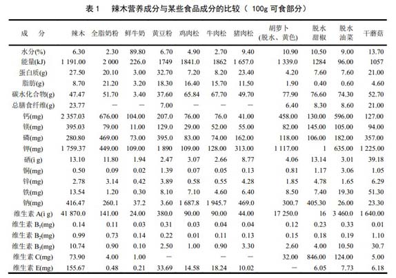 辣木作为蔬菜和食品有增进营养,食疗保健的功能,其营养成分丰富而全面,是已发现拥有植物蛋白、维生素A、叶酸、泛酸、钙、铁、硒等多种营养素的最好来源之一。辣木除根部外皮具有两种生物碱不可食用,其它部位含有丰富的蛋白质及维生素 、氨基酸,对素食者是有极大帮助,其所含的钙质是牛奶的四倍,蛋白质是牛奶的二倍,钾是香蕉的三倍,铁是菠菜的三倍,维生素C是柑橘的七倍,维生素A(β胡萝卜素)是胡萝卜的四倍,只要3汤匙的辣木叶粉,就含有幼儿每日所需的270%维生素A、42%的蛋白质、125%的钙、70%的铁及22%的维生素C,是对抗营养不良的健康食品,被西方科学家誉为“奇迹之树”。作为国家认可的食药两用新资源食品,辣木叶无任何毒副作用,它的营养补充适合所有需要这些营养的人群。1997年,美国基督教世界救济会开始与塞内加尔组织合作推动一项计划,他们将辣木加入当地人民的饮食中,用以对抗营养失调及预防疾病,有显著的成果。这种耐干旱且成长快速的树木也因此被称为“奇迹之树”,而渐为人所熟知。
