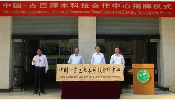 2014年04月12日中国—古巴辣木科技合作中心揭牌仪式在云南省热带作物研究所举行。