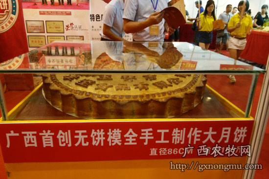 展会上出现的“广西首创无饼模全手工制作大月饼”,重达168斤