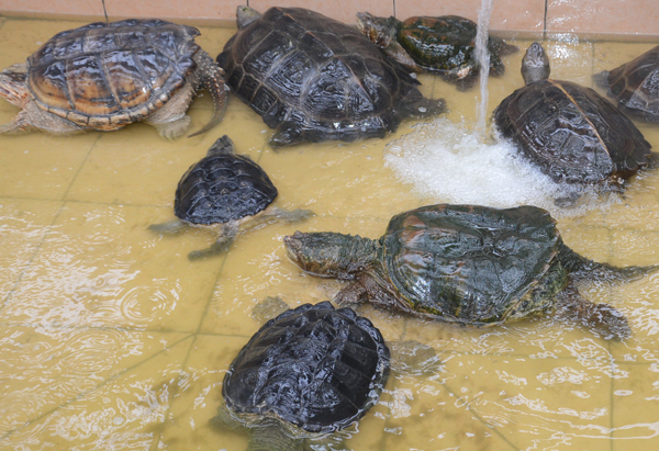 二、性别在性别方面,雌龟的生长速度明显快于雄龟,这种区别在三线闭壳龟、广东草龟及六线草龟中表现特别明显。如同一年龄的六线草龟中,雄龟体重在0.7~1斤,雌龟却有5斤左右,而其实很多成年后的龟,都是雌龟比雄龟体型更大一些。