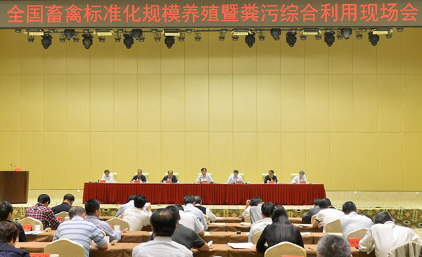 10月14日—15日,农业部在湖北仙桃召开全国畜禽标准化规模养殖暨粪污综合利用现场会。农业部副部长于康震强调,当前畜禽养殖污染已经成为农业面源污染的重要来源,破解粪污综合利用问题迫在眉睫。要以畜禽养殖标准化示范创建活动为抓手,以畜禽粪污综合利用为核心,以农牧结合、种养平衡、生态循环为基本要求,持续推进规模化、标准化、生态化畜禽养殖,争取到2020年规模养殖场配套建设粪污处理设施比例达75%以上,畜禽粪污基本资源化利用。