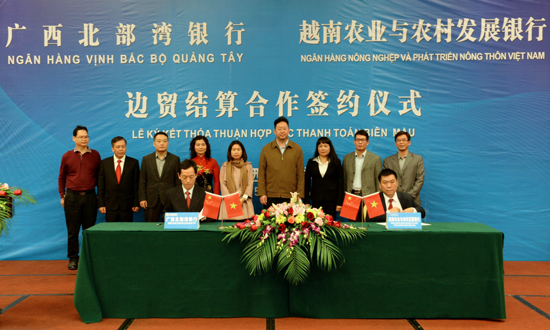 近期,广西北部湾银行与越南农业与农村发展银行在中越边境口岸城市凭祥签订边贸结算合作协议。凭祥市人民政府、国家外汇管理局崇左中心支局、崇左银监分局,以及有关企事业单位代表参加仪式。