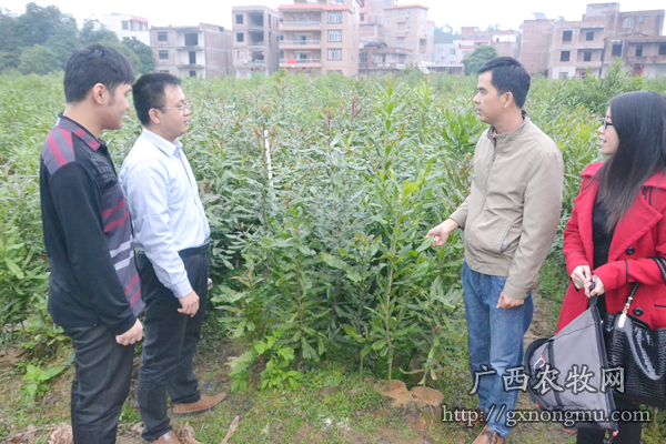 广西金融投资集团有限公司岑溪综合金融服务中心总经理刘金(左二)到新丰公司种苗基地考察