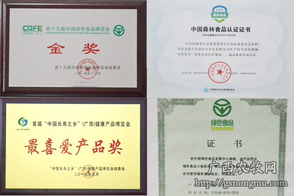 2013年,公司获得梧州市农业产业化重点龙头企业荣誉称号;2014年获得首届“中国长寿之乡”广西健康食品博览会“最喜爱产品奖”,第十五届中国绿色食品博览会金奖。2015年,公司在前海股权交易中心挂牌。
