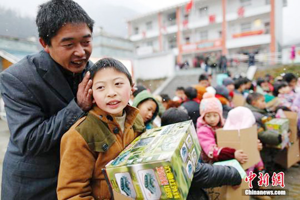 资料图。1月22日,四川省绵阳市北川县桃龙乡铁龙村举办留守儿童新年礼物发放活动。中新社记者 王骏 摄