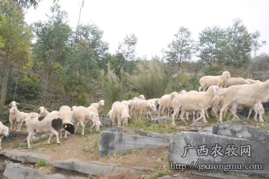 核心提示:澳寒羊是通过澳洲白羊与小尾寒羊杂交一代母羊,再与纯种澳洲白公羊杂交,选育出适应广西气候的绵羊品种。澳寒羊以抗病力强、行动能力强、肉质口感好、产子率高、生长速度快等特点而闻名。澳寒羊作为新兴产业,在我国多地还难寻踪影,但是,在广西横县马岭镇飞马村的一块山头,却聚集了1000多头澳寒羊。