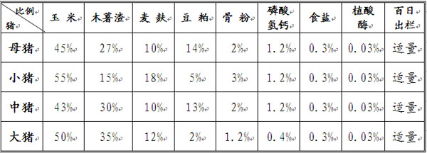 野猪的食量较小,一般一天喂2次即可。野猪喜生食,食性杂,各种杂草、菜叶、根茎、作物秸秆等,都可作为野猪的饲料。野猪特别喜欢青绿饲料,因此,日粮中,青绿饲料要占一定的比例。经验证明,以青绿饲料为主,配合一定量的精饲料和粗饲料,即可养出健壮的野猪。下面提供一些野猪的饲料配方,仅供参考。