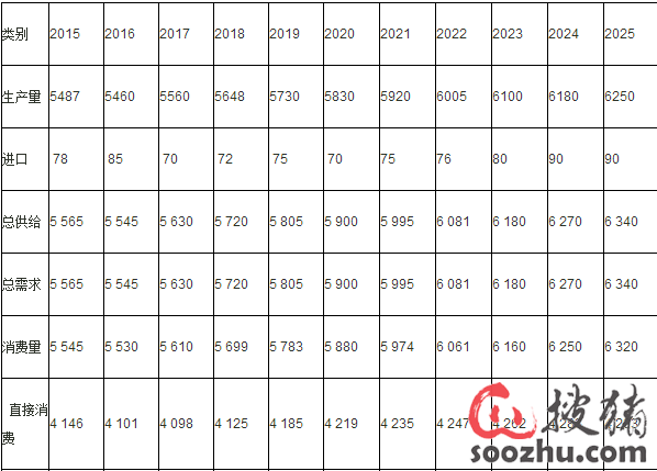 2015—2025年中国猪肉供需平衡表 单位:万吨
