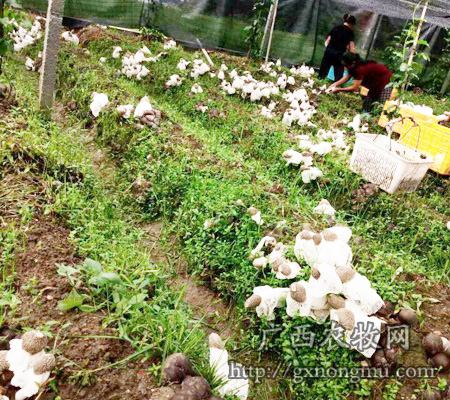 广西融水县永富生态农业有限公司三年前从福建引种竹荪,通过竹林和大棚种植竹荪300多亩,采用立体化栽培发展模式,竹林栽培亩产达1000斤,大棚种植则高达2000斤以上,产品畅销于广东、上海、北京等高端城市,取得了良好的经济效益。公司同时向农户提供菌种、基质和技术指导,并保底收购产品,从而扩大竹荪在当地进一步的延伸发展。公司旗下永益食用菌专业合作社被列为柳州市“十大农业项目”“菜篮子工程”基地,“无公害标准化示范基地”。