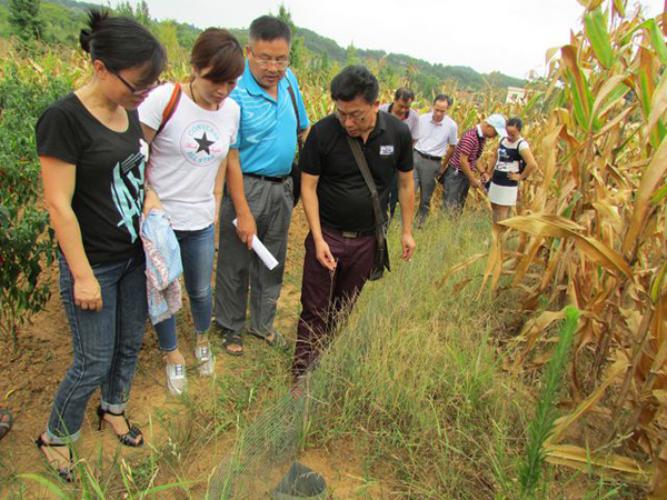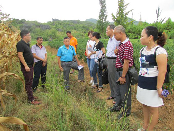 根据项目实施进度,按项目管理规定,8月2日,桂林市植保站组织农业专家到现场查定“TBS”技术应用效果。农业专家组成员在市植保站张武鸣站长、全州县宾莉站长及市植保站陈斌艳高级农艺师等陪同下,一行9人来到全州县石塘镇“围栏-陷阱法”(Trap-Barrier-System,“TBS”)试验基地查看“TBS”技术应用效果。