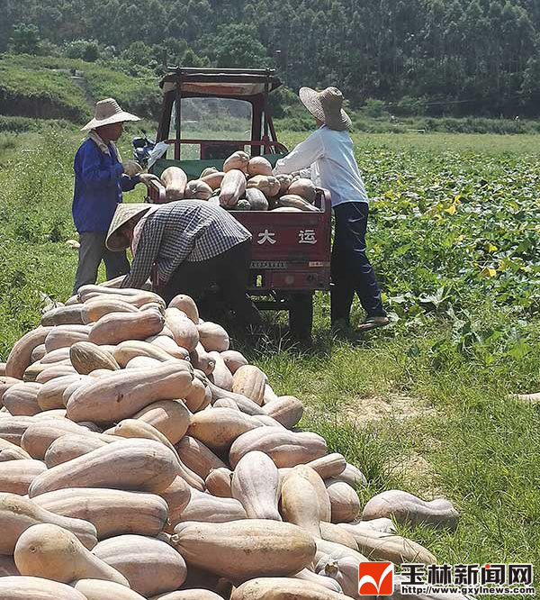 今春玉林市玉州区仁厚镇引进种植近400亩蜜本南瓜,现在已开始收获上市。记者走访了解到,这些南瓜亩产一般在2000公斤—2500公斤,比本地南瓜产量高。目前大部分销往山东、河北、河南、湖北等地,货源供不应求。