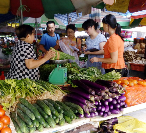 近日,农业部农产品质量安全监督检验测试中心南京站钱科长、金科员两名技术员,在崇左市农业局、凭祥市农业局的陪同下,来到凭祥市进行农产品抽样。分别深入到竹山基地、夏石哨平村、上石天富盈农业合作社、农贸市场、超市等五个点,共抽取了17个水果、蔬菜样品。在采样过程中,农业部两位老师详细询问了凭祥市农产品生产来源、销售渠道、农药使用情况等,还现场指导了种植管理、病虫防治技术,并对如何建立稳定的销售网络提了建议。