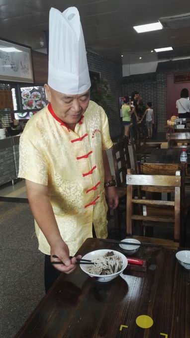 桂林米粉文化中心米粉传承人梁志强在调配米粉。
