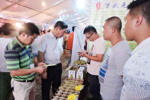 农产品展示一条街不仅聚集了兴安县各个乡镇的优质特色农产品及加工品,而且还聚集了全州、资源等县的部分特色农产品,不仅有特色水果、蔬菜、畜禽,还有不少的农产品加工品(米粉、白果、果汁、茶叶),因此受到了很多游人、客商和农民的关注,有的是专门来观赏的,也有的是专门来购买的,还有不少的的本地农民是前来了解新品种的种植或养殖情况的。新引进的水果品种--红心和黄心猕猴桃,清香爽口,营养丰富,经济效益好,崔家乡的黄心猕猴桃卖价最高达到30元/斤,更是吸引不少关注的目光。葡萄新品种--阳光玫瑰也备受亲睐,香甜可口,卖相美观,耐储运,价格好,是葡萄种植户不错的选择。