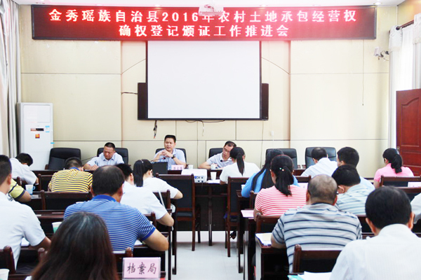9月14日上午,在金秀县政务中心302会议室召开金秀瑶族自治县2016年农村土地承包经营权确权登记颁证工作推进会,樊占强副县长、县府办黄福荣副主任、县农业局党组书记陶学胜局长出席了本次会议。