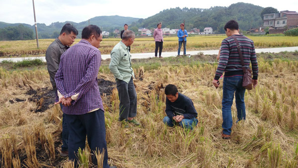 今年市农技中心通过政府采购购得红花草种、根瘤菌等冬种绿肥物资6000多公斤,在柳北区上垌、大仙村,柳南区上等村及柳江县成团镇等主要水稻高产示范区及主要公路沿线布置了1500亩的冬种绿肥示范片,并赶在秋收前发放到位,确保稻底播种红花草。目前红花草等绿肥已全部播种下田。11月2日,市土肥站的农业技术人员查看了位于沙塘镇上垌村的红花草示范片,该处是由市土肥站农技人员下田指导的最早稻底播种的红花草示范片。示范片晚稻已完成收割,田间的稻蔸在明媚的阳光照射下格外清新,红花草苗一丛丛散落田间,在禾杆下露出翠绿的脸,一片生机盎然。看到农技人员来到田间,农闲沐阳的村民自发来到收割后的稻田,仔细听取红花草种植的高产栽培技术。红花草属豆科根瘤固氮作物,施肥应以磷、钾肥为主,适施氮肥。磷肥除作种肥外,在“立冬”前每亩还要追施15-20公斤钙镁磷肥,以促进根系生长,增加根瘤菌固氮能力,达到以小肥养大肥的目的。晚稻收割后,要及时开好厢沟、腰沟和围构,做到沟沟相通,田无渍水。