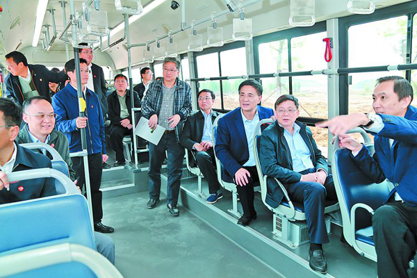 12 月1 日至2 日,自治区党委副书记侯建国到我市调研。市委书记李新元、市长农融陪同调研。图为在华奥新能源汽车项目调研。