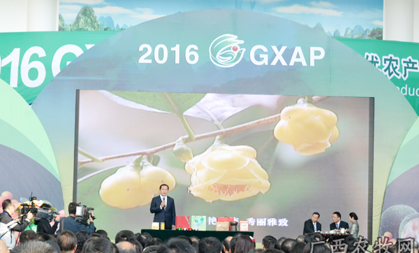12月9日,由国家农业部和广西壮族自治区人民政府共同主办的,以“山清水秀美广西、 绿色生态好产品”为主题的第十一届广西名特优农产品交易会在桂林国际会展中心隆重开幕。自治区副主席张秀隆、中国工程院院士傅廷栋、自治区农业厅厅长白希、桂林市市委书记赵乐秦等领导参加了出席了本场开幕式。