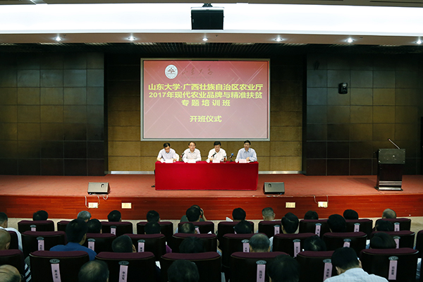 为加快推进我区农业供给侧结构性改革、拓宽全区农业系统领导干部发展现代农业的思维理念,提升农业品牌化发展和精准扶贫的能力,自治区农业厅于6月11日至17日,在山东大学举办现代农业品牌创建与精准扶贫专题培训班。自治区农业厅党组书记、厅长刘俊,农业厅党组副书记、副厅长郭绪全参加开班仪式。