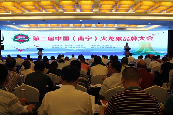 2017年7月6-7日,第二届中国(南宁)火龙果品牌大会在广西壮族自治区南宁市召开。本次会议由南宁市人民政府、中国果品流通协会主办,南宁市农业委员会、南宁火龙果产销联盟承办。全国政协委员、中国果品流通协会会长赵显人,中国果品流通协会常务副会长、秘书长鲁芳校,广西农业厅副厅长谢东,南宁市人民政府副市长刘为民,广西特色水果首席科学家陈东奎,南宁市人民政府副秘书长韦伟,南宁市农业委员会主任杨敏,广西水果技术指导总站副书记农少林,南宁市市供销合作联社副主任张树辉,南宁市农业委员会总农艺师欧桂兰等领导出席会议。会议邀请了行业专家、全国各地知名水果生产、加工、销售客商以及本地火龙果种植企业等共计500多人,共同研讨2017年火龙果品牌打造促进行业提升发展新课题。