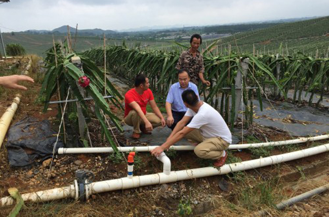 深入火龙果示范现场了解水肥一体化开展情况