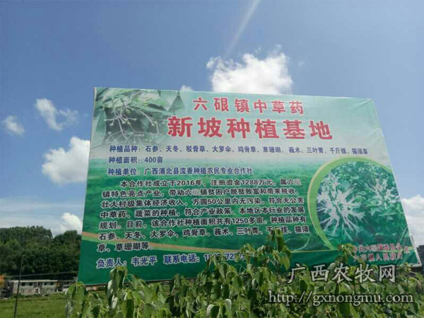 为了加速中草药规模化、产业化、辐射化发展,浦北县政府投资200万元,计划种植中草药1000亩,把六硍镇打造成 “中草药种植之乡”。广西浦北县流香合作社成为浦北县新型农业经营主体之一,目前中草药种植面积达到1250亩,带动全镇200多户贫困户通过种中药材脱贫致富,为地方带来税收,推动地方经济发展。