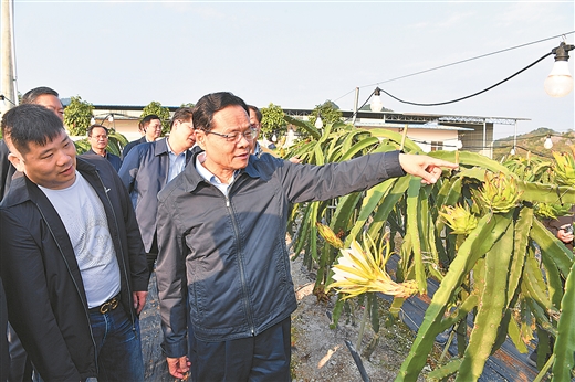 12月5日,自治区主席陈武来到位于龙州县上林乡的彩港农业有限公司火龙果种植基地调研。他鼓励企业积极参与当地脱贫攻坚工作,帮助贫困村民早日脱贫致富。