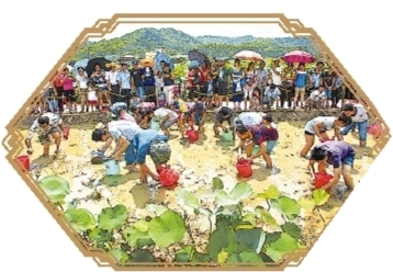 贵港市覃塘区荷美覃塘莲藕产业示范区举办的荷田捉鳅活动