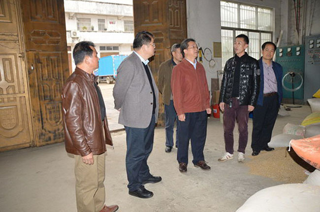 钦州市副市长李从佳和市农业局局长方建安在万穗米业有限责任公司调研