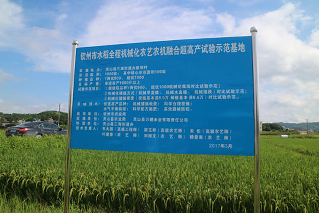 灵山县万穗米业有限责任公司是灵山县农业产业化重点龙头企业,广西名优农产品联合会员单位,公司在新垌村承租土地建有水稻全程机械化农艺农机融合超高实验示范基地与富硒水稻生产示范基地共500亩,每造可产水稻300吨,是目前灵山县水稻生产基地产量最大的示范基地之一,公司的水稻生产基地被认定为广西区农业标准化生产技术示范基地。