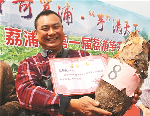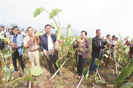 县主要领导在荔浦县第一届荔浦芋采收节上向客商推介荔浦芋